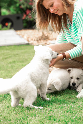 Philly ist eine besondere Hündin. Unser erster Weisser Schäferhund Zeus ist ihr Urgroßvater, meine Scully ihre Großmutter und Eowyn ihre Mutter. Alle lebten und leben hier seit 2007 in der Zuchtstätte. Zoom und Philly sind bereits die Eltern von unserem "Legend of White the Dark Side" , welcher ebenfalls hier bei uns lebt. Wir sind stolz diese wundervolle Verpaarung wiederholen zu können.