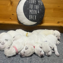 Philly hat in einer rasanten und komplikationslosen Geburt 4 Rüden und 5 Hündinnen das Leben geschenkt. Wir sind überglücklich über den Verlauf und freuen uns auf die kommenden acht Woche mit den kleinen Legends :-)
